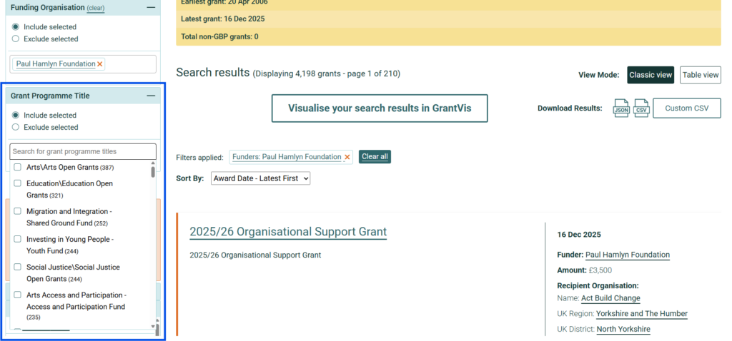 Example: Paul Hamlyn Foundation - (Optional) A date range